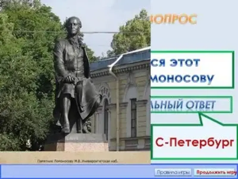 - Где находится этот памятник Ломоносову .(Москва.Воробьевы горы)