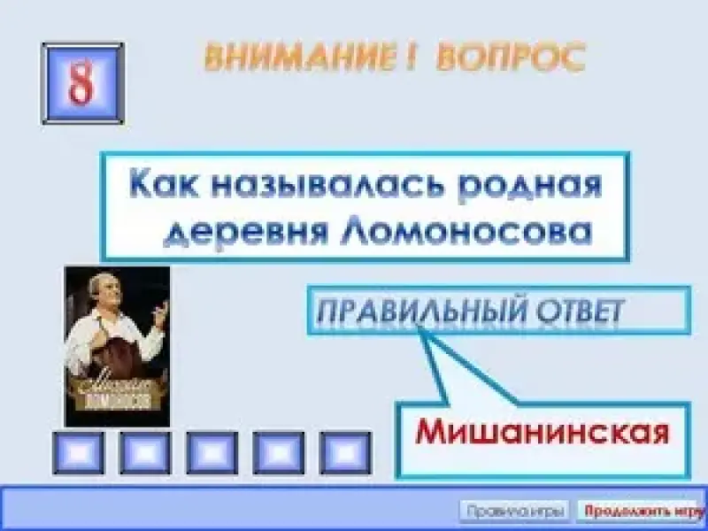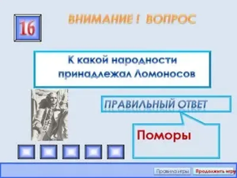 Нашу викторину я хочу начать со слов Белинского: "На берегах холодного моря, подобно северному сиянию. Блеснул Ломоносов. Ослепительно и прекрасно было это явление! Оно доказало собой, что человек есть человек во всяком состоянии и во всяком климате. Что гений умеет торжествовать над всеми препятствиями, какие не противопоставляет ему враждебная судьба, что, наконец, русский способен ко всему прекрасному и великому не менее всякого европейца"