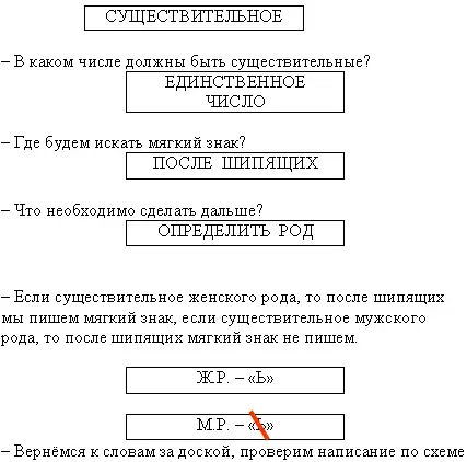 (Мягкий знак на конце существительных.) - Посмотрите, как заканчиваются имена существительные и уточните тему. (Правописание мягкого знака после шипящих на конце имен существительных.) |