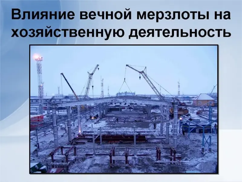 - Вечная мерзлота образует водопроницаемый слой, что осложняет хозяйственную деятельность людей. Сложно строить дороги, здания, вести добычу полезных ископаемых.