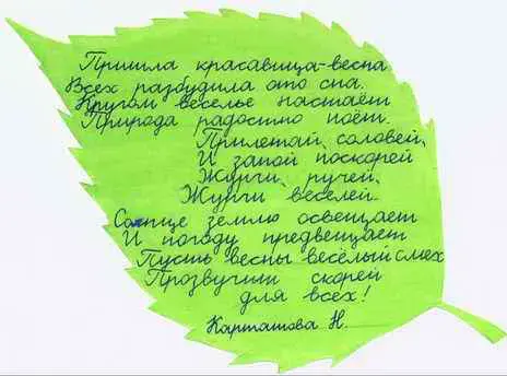 - Давайте прочтём самые интересные стихотворения, которые удалось написать учащимся. (Дети писали последние 5 минут на уроке чтения, на переменах.)