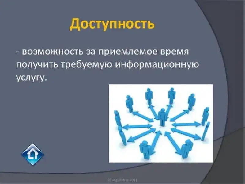 Доступность - это возможность за приемлемое время получить требуемую информационную услугу.