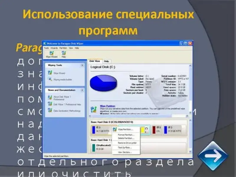 Paragon Disk Wiper не допустит утечку значимой для Вас информации. С помощью неё Вы сможете безопасно и надежно удалить данные со всего жесткого диска, отдельного раздела или очистить свободное место на нем. После удаления данных обычным путем их можно восстановить.