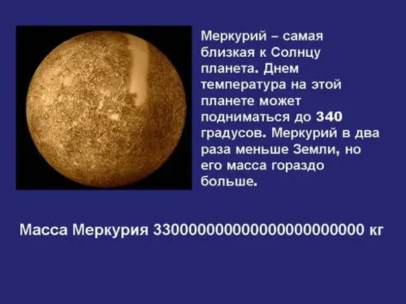 - Масса Меркурия - 330000000000000000000000 кг (слайд 10)