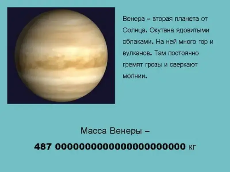 - Масса Венеры - 487 0000000000000000000000 кг (слайд 11)