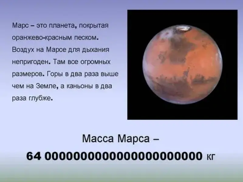 - Масса Марса - 64 0000000000000000000000 кг (слайд 12)