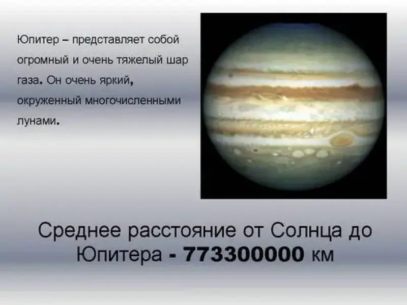 - Среднее расстояние от Солнца до Юпитера - 773300000 км (слайд 14)