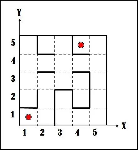 Имеется лабиринт прямоугольной формы. Нужно найти путь из заданной клетки (вход) в другую заданную клетку (выход). Ходы разрешается делать только по горизонтали и вертикали, и только по проходам. Гарантируется, что путь существует. Найти решение.