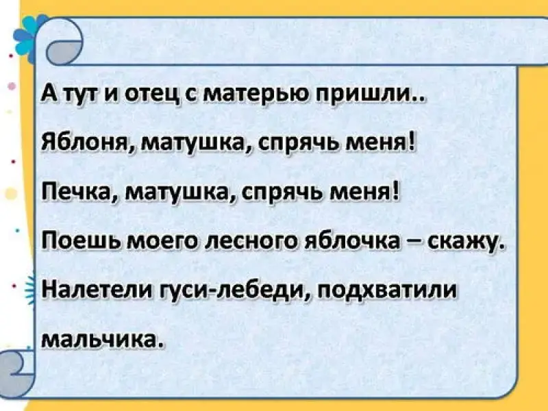 Учитель: Сегодня на уроке мы продолжим работать с РНС "Гуси-лебеди".