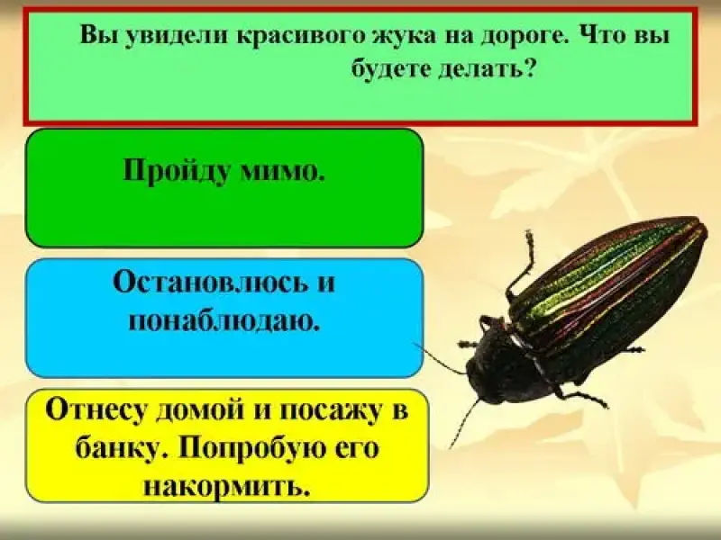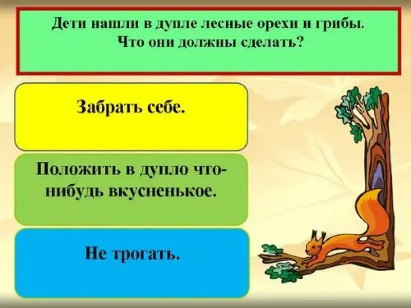 Учитель: Я предлагаю вам сыграть в игру "Будь природе другом", чтобы проверить знания по правилам поведения в природе. Я буду демонстрировать слайды с вопросами и тремя вариантами ответов. Каждый ответ определенного цвета. Чтобы ответить на вопрос надо показать фишку того цвета, который соответствуют, по-вашему, мнению, правильному ответу.