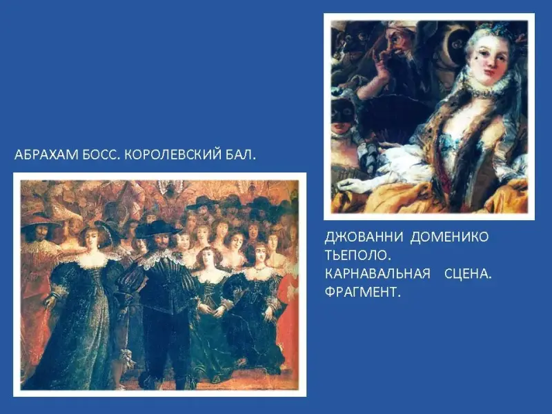 Корни балета в народном творчестве. Разнообразные и богатые по содержанию народные танцы разных стран Европы стали источником этого сложного вида музыкально-театрального искусства, прошедшего долгий и сложный путь развития. Но большую роль в возникновении балета сыграли не только народные пляски, которые в далеком прошлом сопровождались пением, возгласами, выразительными жестами, воссоздавая сцены из народной жизни. Оказали влияние на зарождение балета и маскарады, карнавальные шествия, конные турниры, торжественные процессии, балы - придворные развлекательные представления (особенно в Италии и Франции XVI-XVII веков), в которых танцам было отведено почетное место. (Слайд 3 )