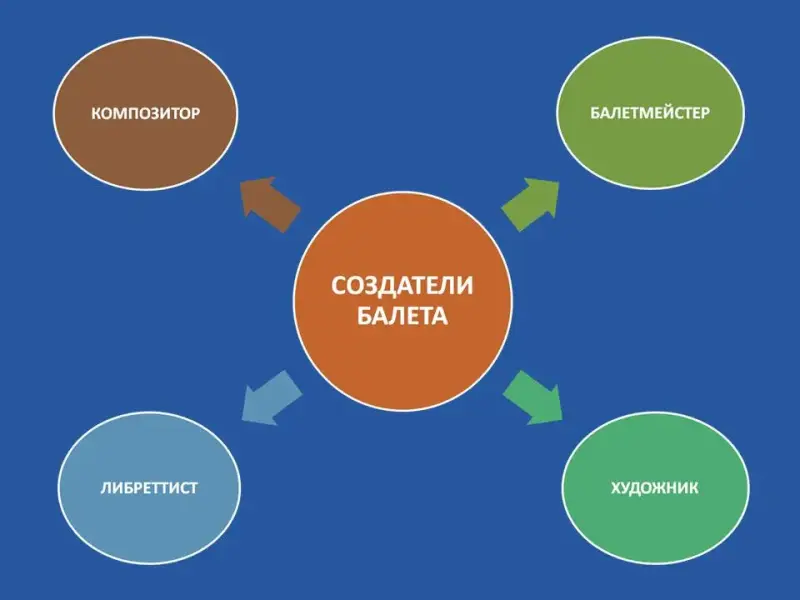 Композитор пишет музыку на основе либретто (краткое изложение содержания). Балетмейстер сочиняет хореографию (от греческих слов: «хорео» - пляска, «графо» - пишу).Художник создает костюмы действующих лиц и декорации.