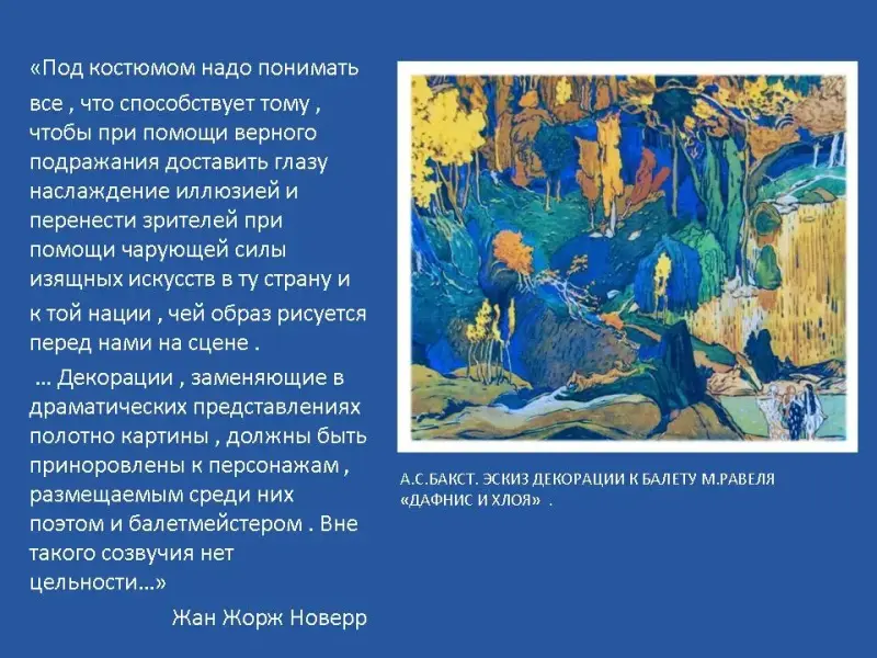 является эхом, повторяющим то, что говорит музыка», - так писал Жан Жорж Новерр - великий реформатор балета. (Слайд 10)