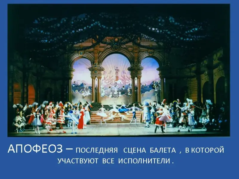 Балет обычно завершается торжественной массовой сценой - апофеозом.