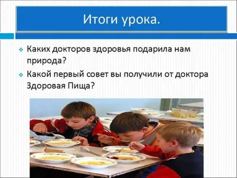 - Наши занятия необычны, их можно назвать уроками здоровья. На этих занятиях вы узнаете об особенностях своего организма, о том, как нужно заботиться о своём организме, чтобы не заболеть, т.е. узнаете, как попасть в страну Здоровяков. В этой стране есть много докторов, которые дают здоровье ежедневно. Кто они? Сейчас вы это узнаете.