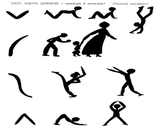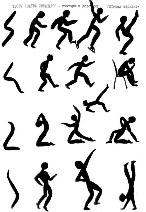 Поэтому теперь вы получите лист со специальным тестом в двух вариантах (рис.9 - 10). Слева я нарисовала кистью некие линии, которые надо перерисовывать, дополняя другими, до получения узнаваемой человеческой фигуры в самых разных движениях.