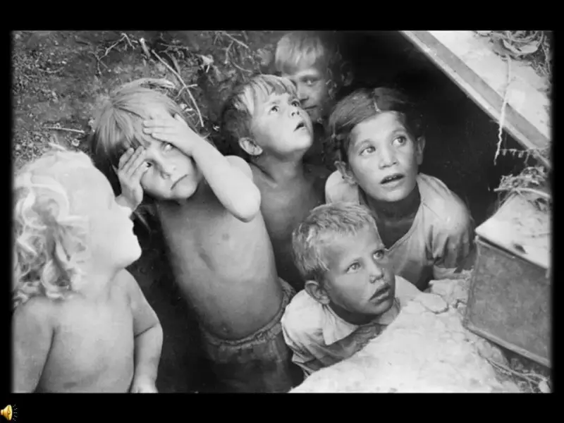 1 ведущий: Дорогие друзья! Мы родились и выросли в мирное время. Мы никогда не слышали воя сирен, извещающих о военной тревоге, не видели разрушенных фашистскими бомбами домов, не знаем, что такое нетопленое жилище и скудный военный паек. Нам трудно поверить, что человеческую жизнь оборвать так же просто, как утренний сон. Об окопах и траншеях мы можем судить только по кинофильмам да рассказам фронтовиков. Для нас война - история.