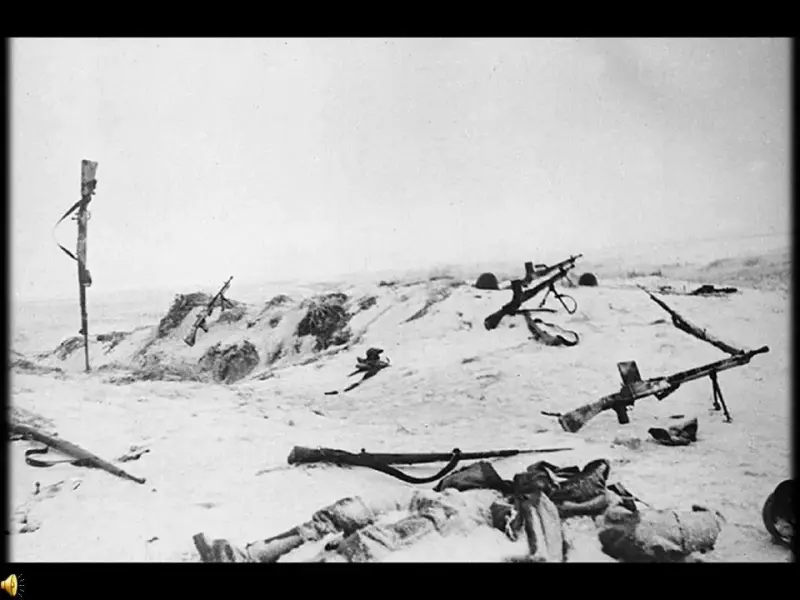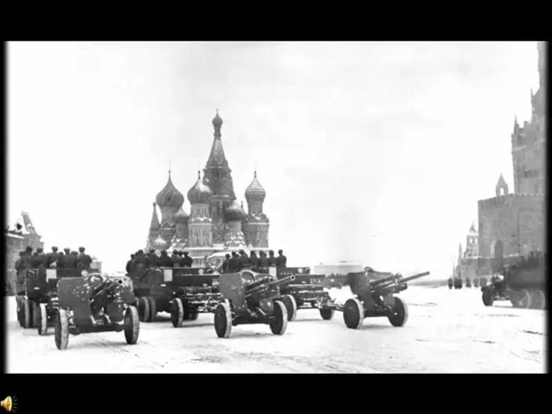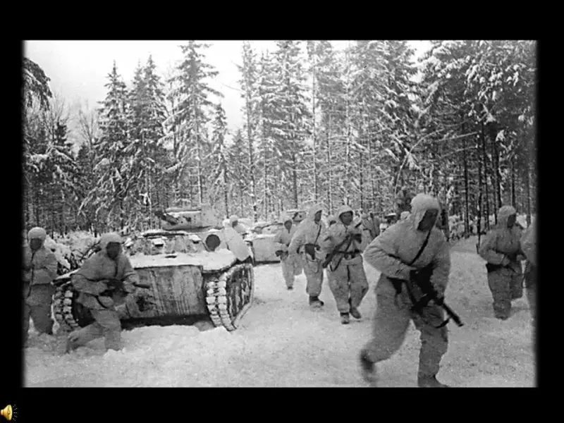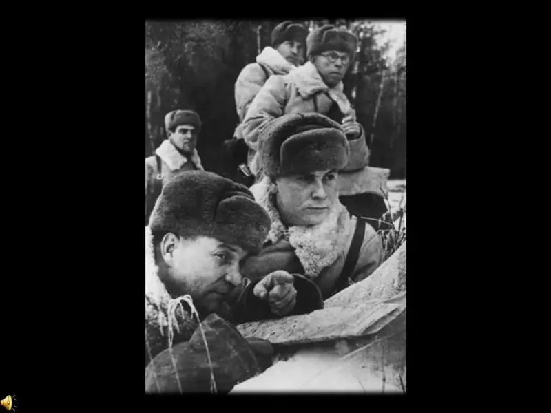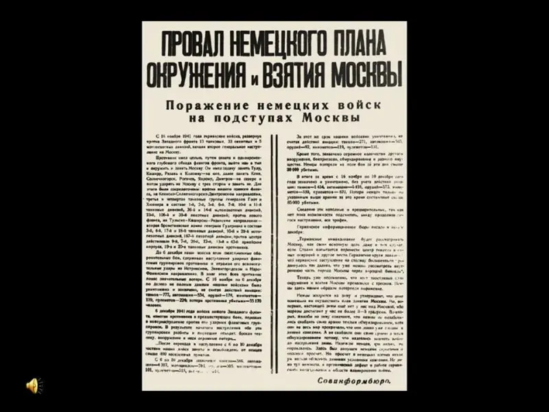 Демонстрация фрагмента мультимедийного фильма "Битва за Москву". (Слайд 10-12)