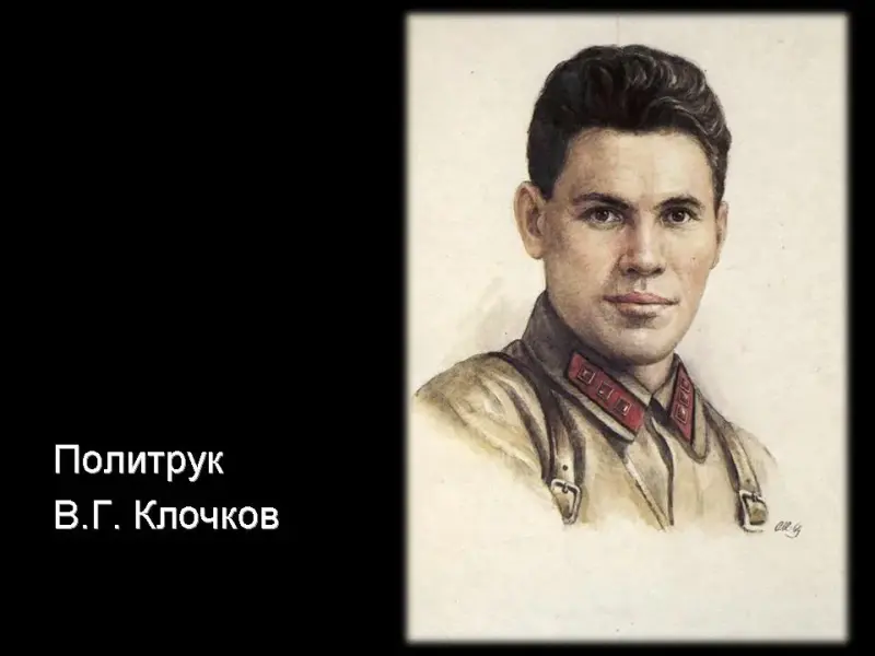 2 ведущий: В разгар боя к бойцам взвода приполз политрук роты Василий Клочков. (Слайд 22) Гитлеровцы бросили против горстки советских воинов более двадцати танков.