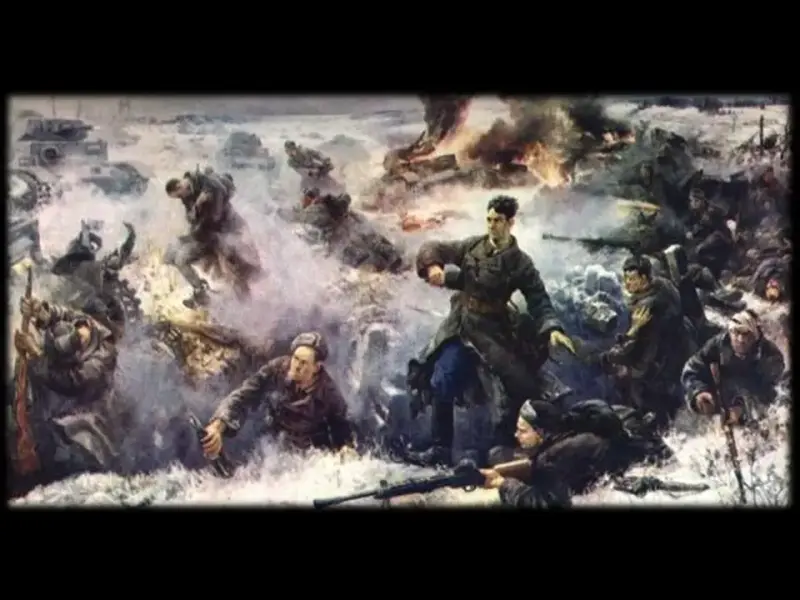 2 ведущий: Слова политрука бойцы восприняли, как приказ Родины сражаться до последней капли крови. Подпустив танки на десять - пятнадцать метров, смельчаки вступили в неравный бой.