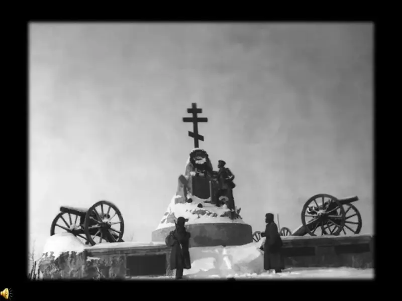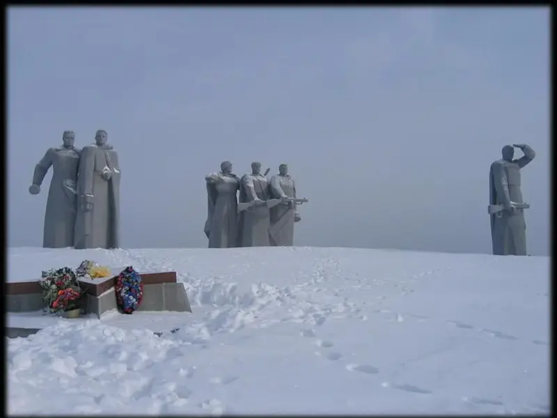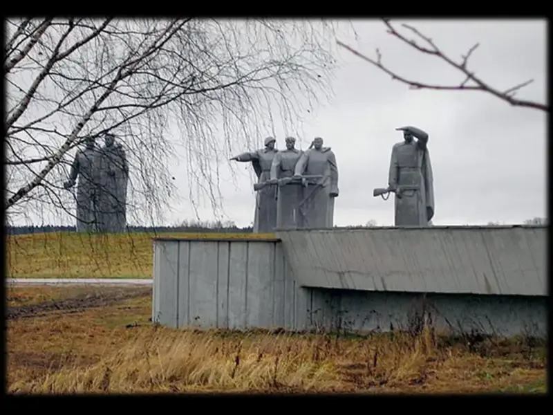 2 ведущий: Всем участникам боя присвоено звание Героя Советского Союза. У разъезда Дубосеково отважным воинам установлен памятник. На мраморной доске выгравированы имена героев. (Слайд 24)