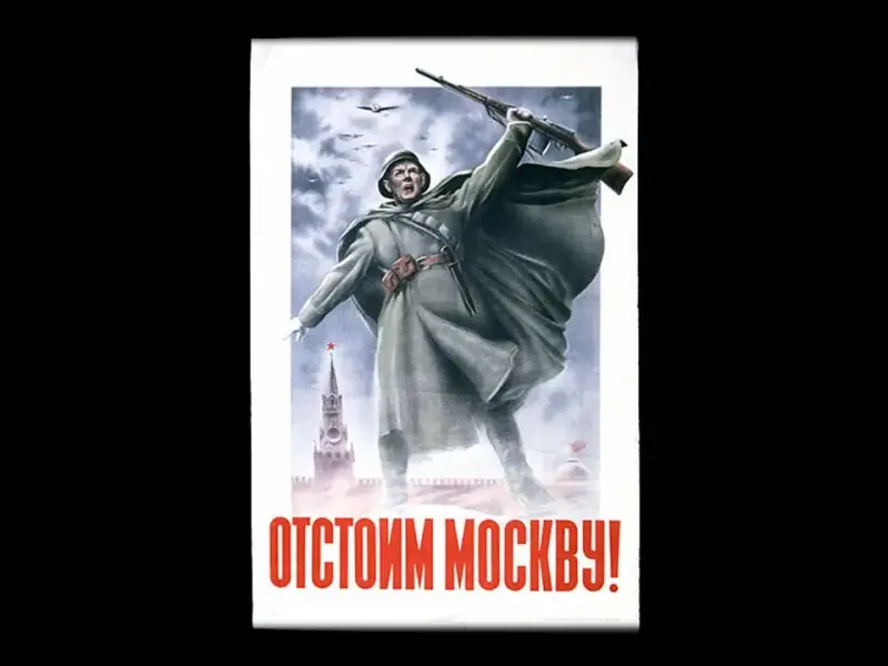 - Плакаты: Б.Мухин плакат 1941 года "Защитим родную Москву"; И.Тоидзе плакат "Родина-Мать зовет"; В.Пинжук плакат 1942 года "Смерть немецким оккупантам".