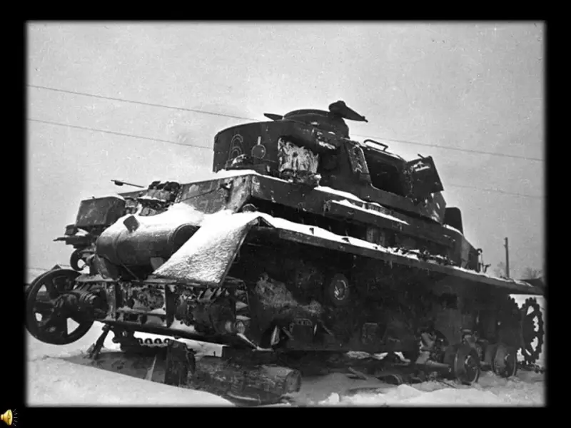 1 ведущий: Передышка оказалась короткой. Вскоре в дымке наступающих сумерек опять показались вражеские танки. Тридцать - сосчитал политрук Клочков. (Слайд 23)