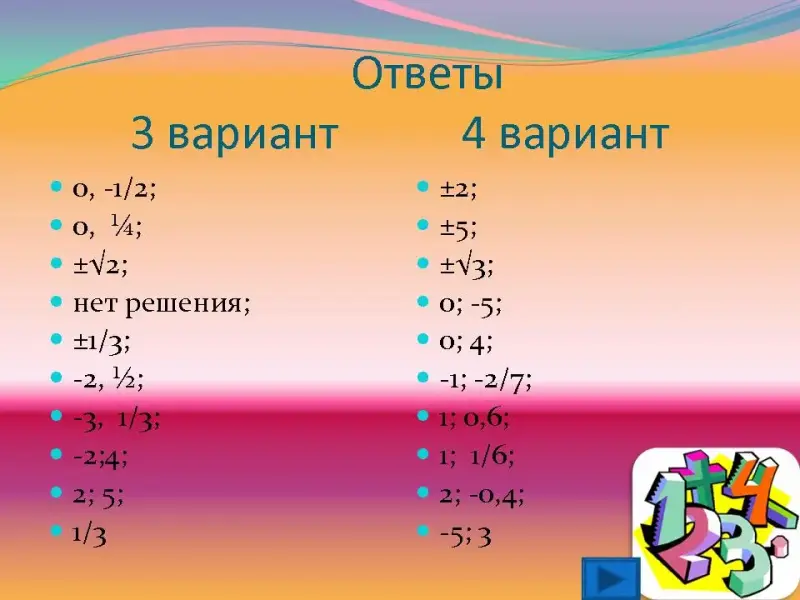 Данная презентация содержит блок-схему для решения квадратных уравнений и тренажер для проверки усвоенного.