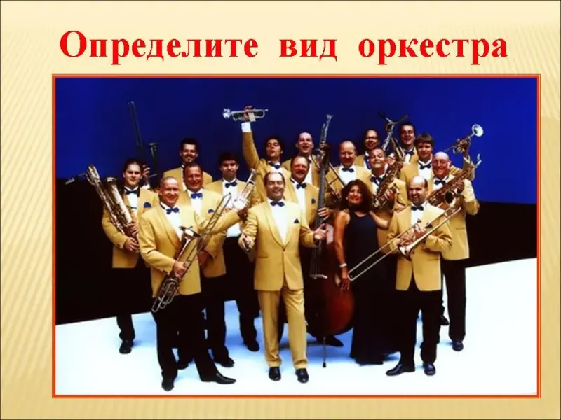 ОРКЕСТР - это коллектив музыкантов, играющих на различных музыкальных инструментах. Какие оркестры вы знаете? (Дети называют)