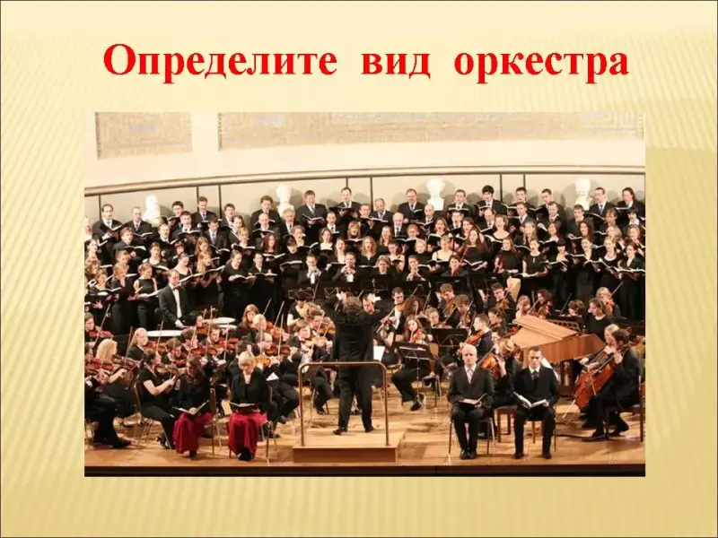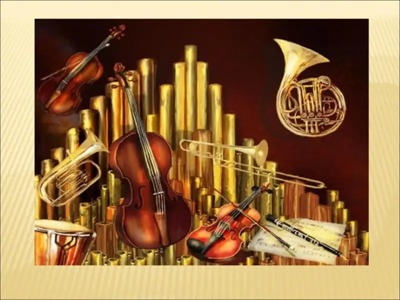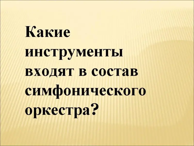 Учитель: Мы раскрываем тайны симфонического оркестра. Какие инструменты входят в состав этого оркестра?