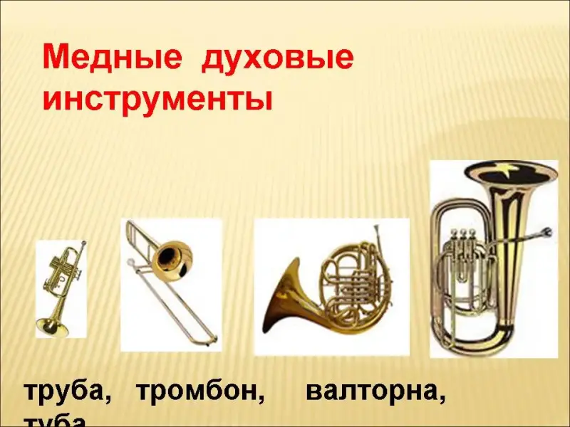 Учитель: К медным духовым инструментам относятся: труба, тромбон, валторна, туба.