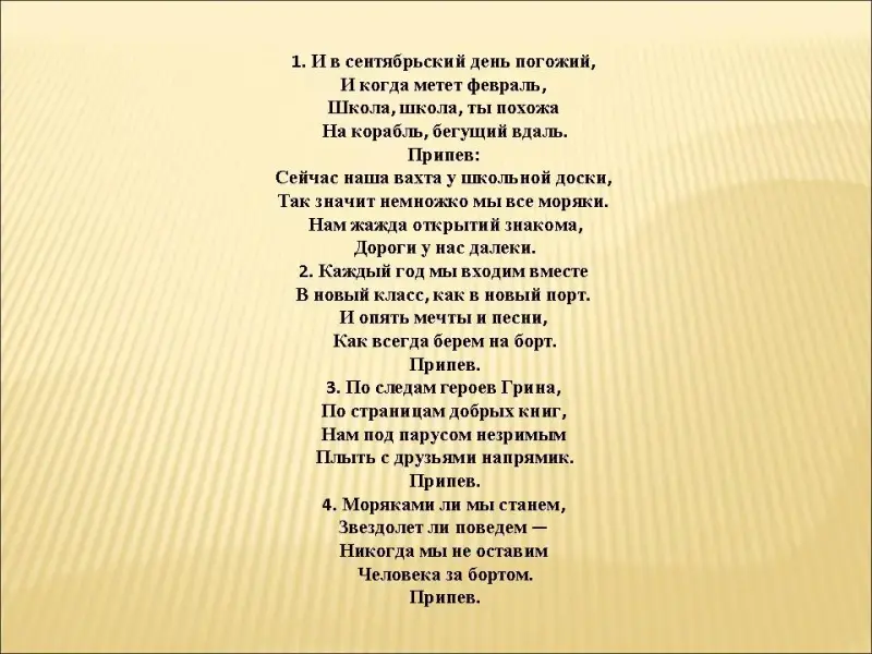 Звучит «Школьный корабль» в сопровождении симфонического оркестра.