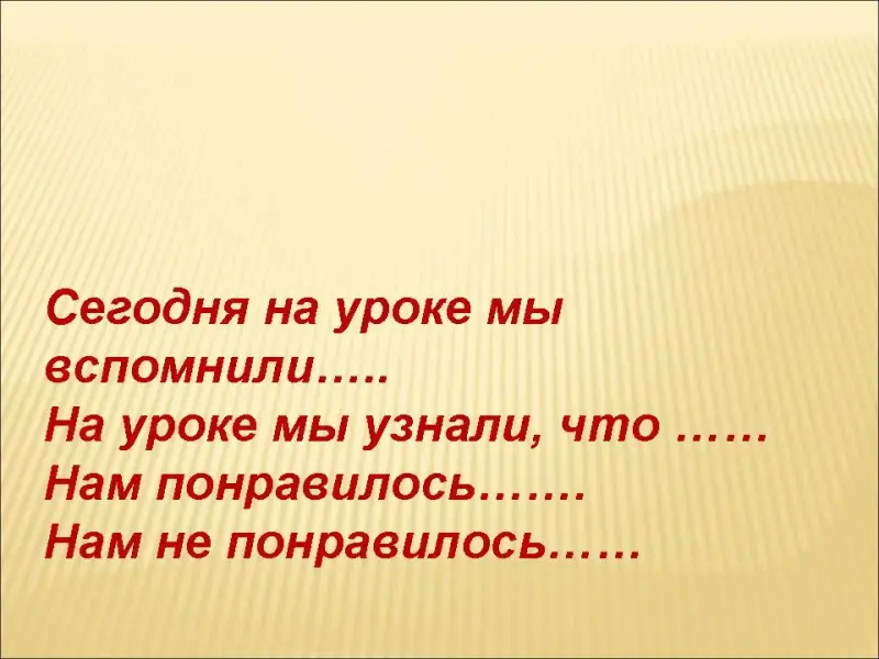 Учитель: Настал новый день. Я улыбаюсь вам, и вы улыбнитесь друг другу. И подумайте: как хорошо, что мы сегодня здесь все вместе. Мы спокойны и добры, приветливы и ласковы. Мы все здоровы. Глубоко вдохните и выдохните... Выдохните вчерашнюю обиду, злобу, беспокойство. Забудьте о них. Вдохните в себя свежесть и красоту осени, тепло солнечных лучей.
