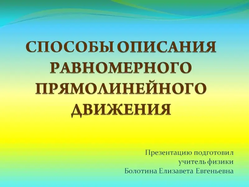 Сегодня на уроке мы поговорим про способы описания прямолинейного равномерного движения. (слайд 1)
