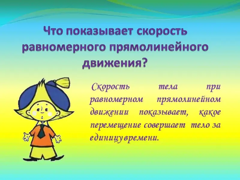 - Что показывает скорость равномерного прямолинейного движения? (слайд 4)