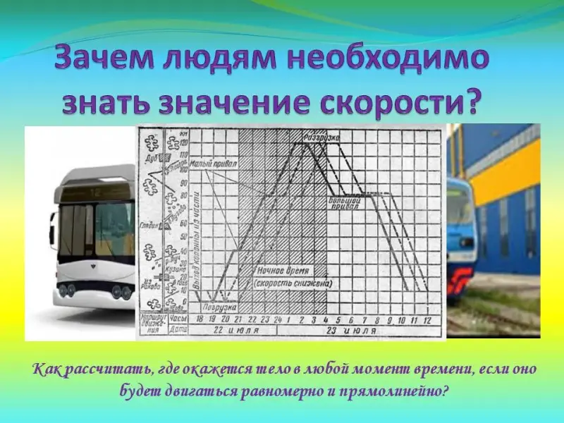 - Какая информация необходима для того, чтобы, например, составить расписание движения автобуса? Как диспетчеры узнают, где находится автобус в определенный момент времени, если известна траектория его движения? (пользуясь экспериментальными данными (время и средняя скорость) диспетчер рассчитывает перемещение автобуса)