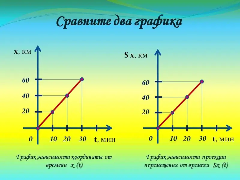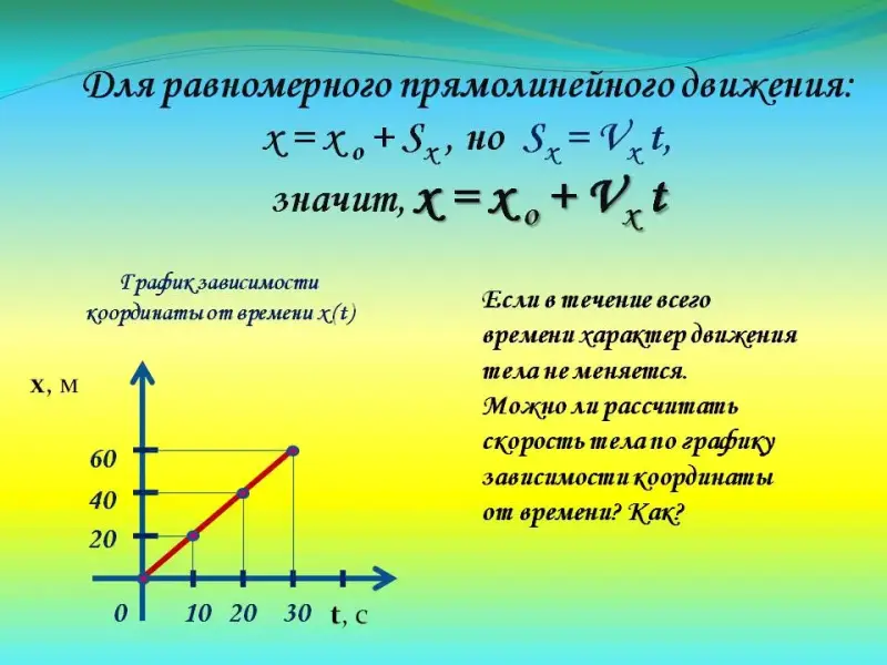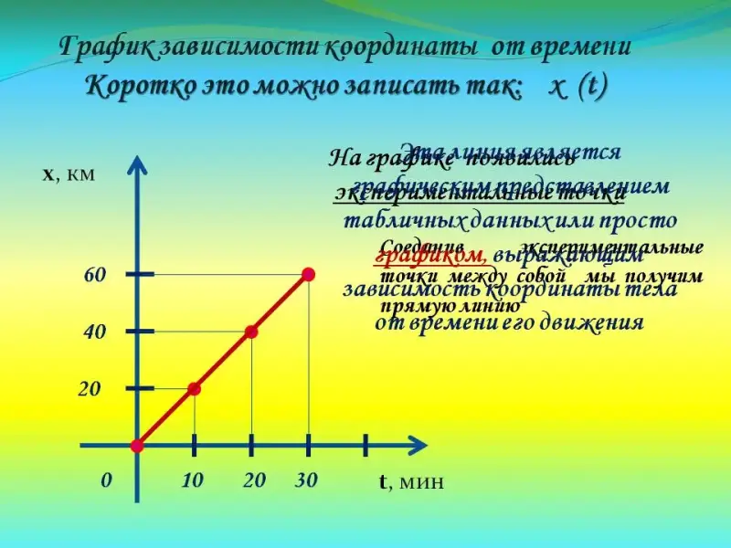 Таким образом, мы получили график зависимости координаты от времени. Коротко это можно записать так: х (t)