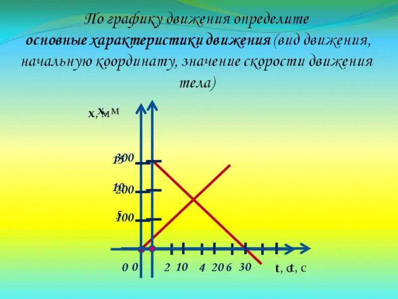 По графику движения (слайд19) определите основные характеристики движения (вид движения, начальную координату, значение скорости движения тела).