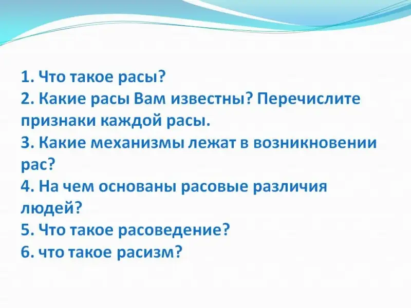 Сегодня, мы пойдем еще дальше и поговорим о человеческих расах, на предстоит найти ответы на следующие вопросы (Слайд 2):
