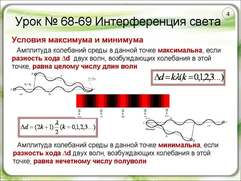 ∆d = kλ, где к = 0,1,2…(слайд 4)