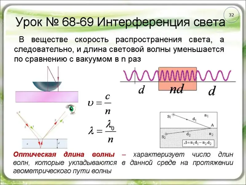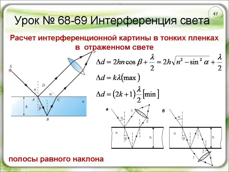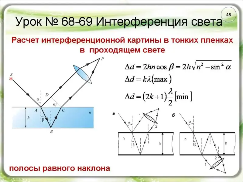 хода двух интерферирующих лучей (слайд ы 26 - 27).