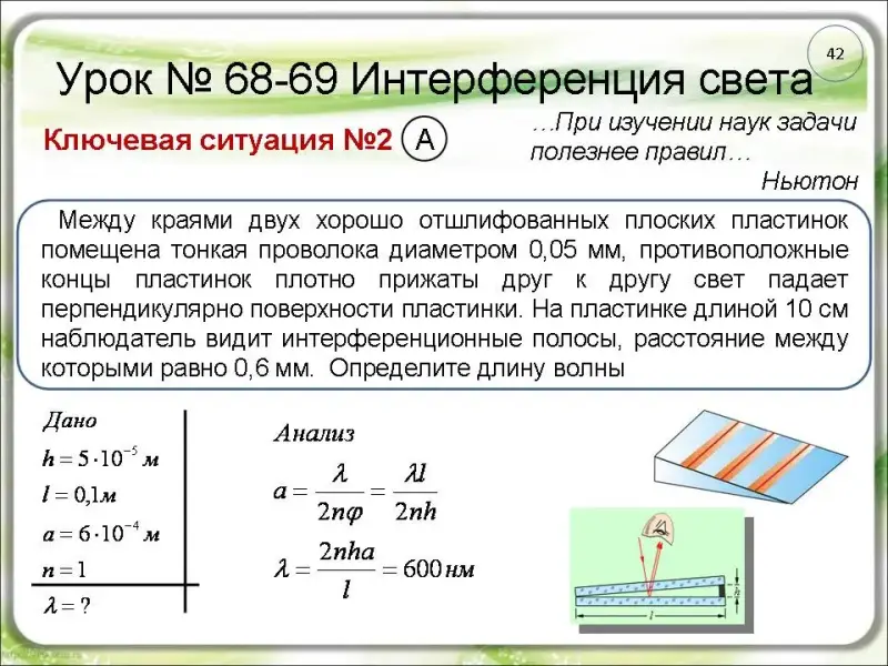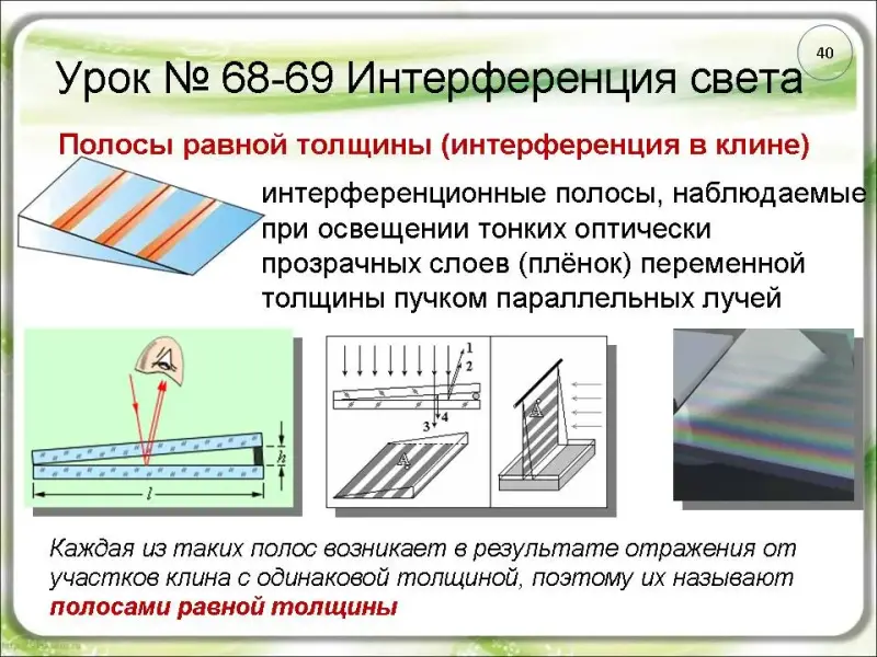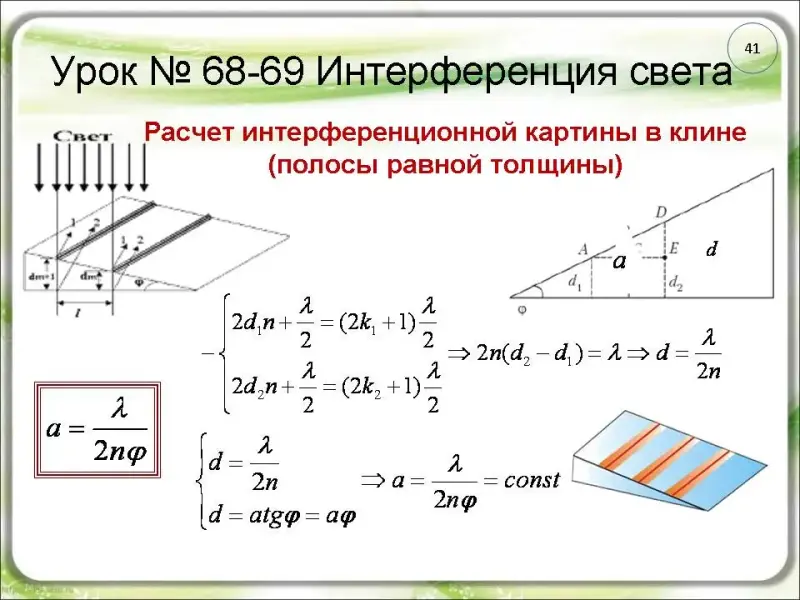 Интерференция в стеклянном клине (слайды 42-43)
