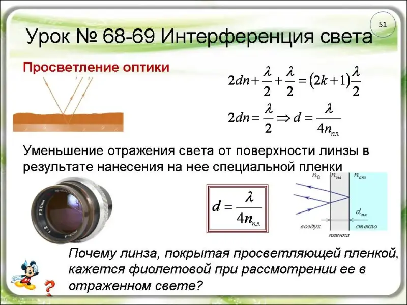 видимого света пленка будет «просветляющей».(слайд 53)