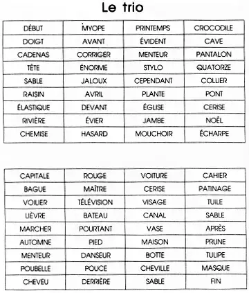 12. Le jeu «le trio», trouvez 3 mots qui etaient places dans deux tableaux