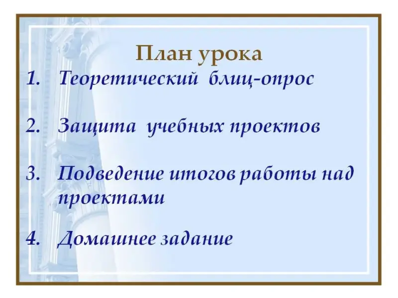 План урока: