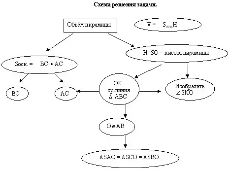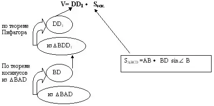 На первых порах поиск решения сложной задачи не возможен без участия учителя. Но постепенно приобретая опыт и навык, учащиеся сами находят пути решения. Более сложными получаются схемы решения задач на вычисление, с применением тригонометрии. Рассмотрим решение задачи.