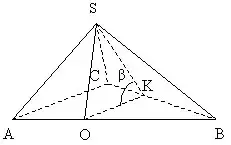 , АВ = с. Боковые рёбра пирамиды одинаково наклонены к плоскости её основания, угол