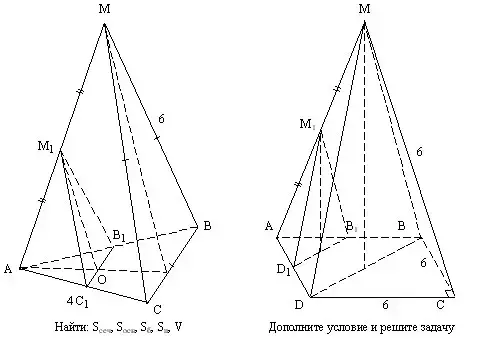 Например, предлагается найти сходства в задачах, заданных на следующих готовых чертежах и для второй задачи, после обсуждения, дополнить условие решить задачу.