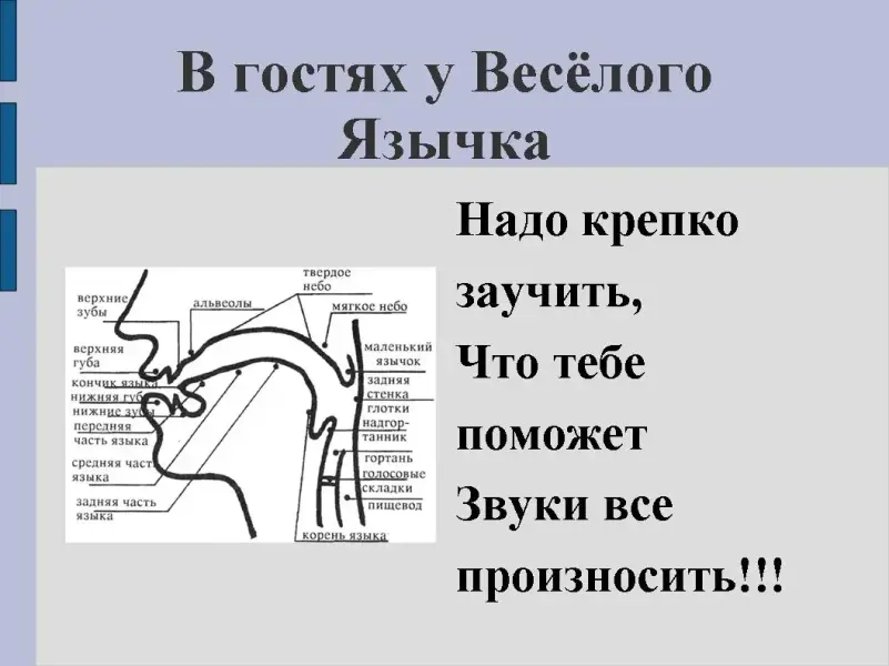 2 слайд: Знакомство с органами речи. "В гостях у Весёлого Язычка"