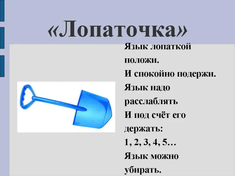 3 слайд: Упражнение "Лопаточка"
